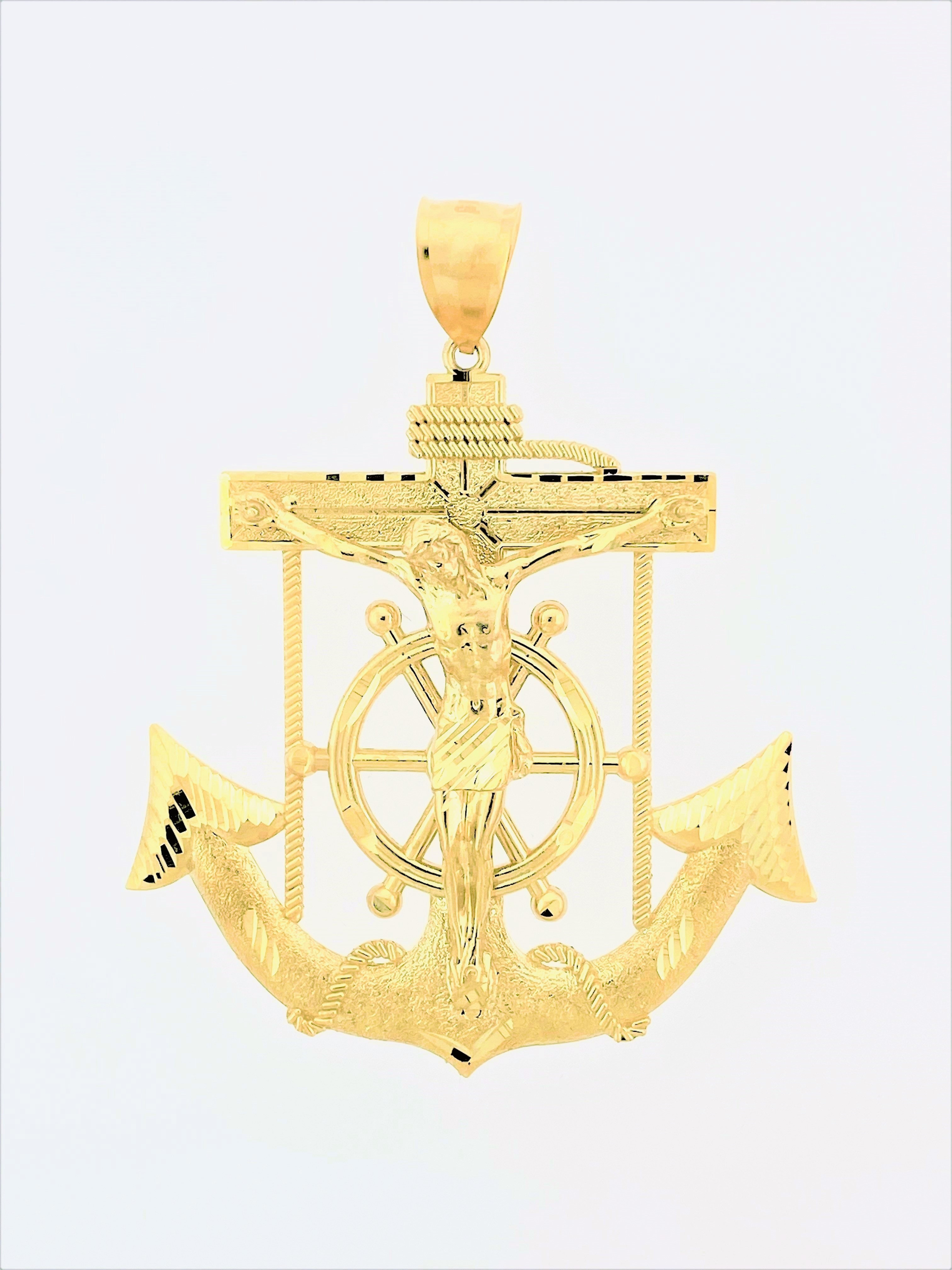 - 10k Yellow Gold Cross Anchor Crucifix 3" Inch
