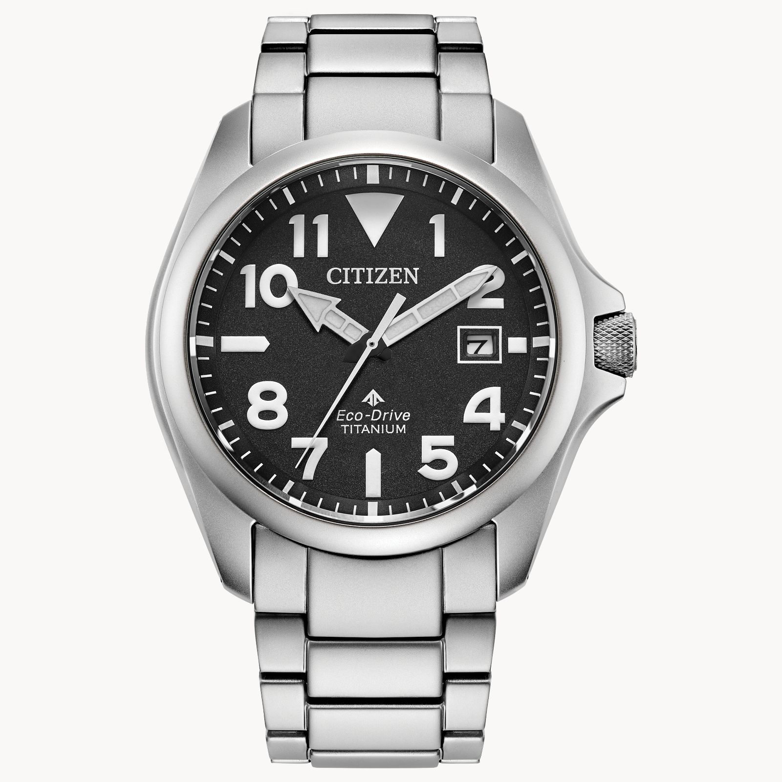 Be ready for the field with the latest adventure-ready timepiece from Citizen’s Promaster Land series. From its one-piece case construction and inwards, the Promaster Tough is ready for action, featuring a built-tough 41mm diameter in silver-tone Super Titanium™, with a matching triple-link bracelet securing it to the wrist with a safety fold-over clasp. On the dial, bright white accents against a deep green background ensure high legibility, with the no-nonsense display ensuring efficient, accurate time checks that won’t distract from the mission. The Promaster Tough is sustainably powered by any light with our proprietary Eco-Drive technology, so it never needs a battery. Water resistant up to 200 meters. Caliber E168.