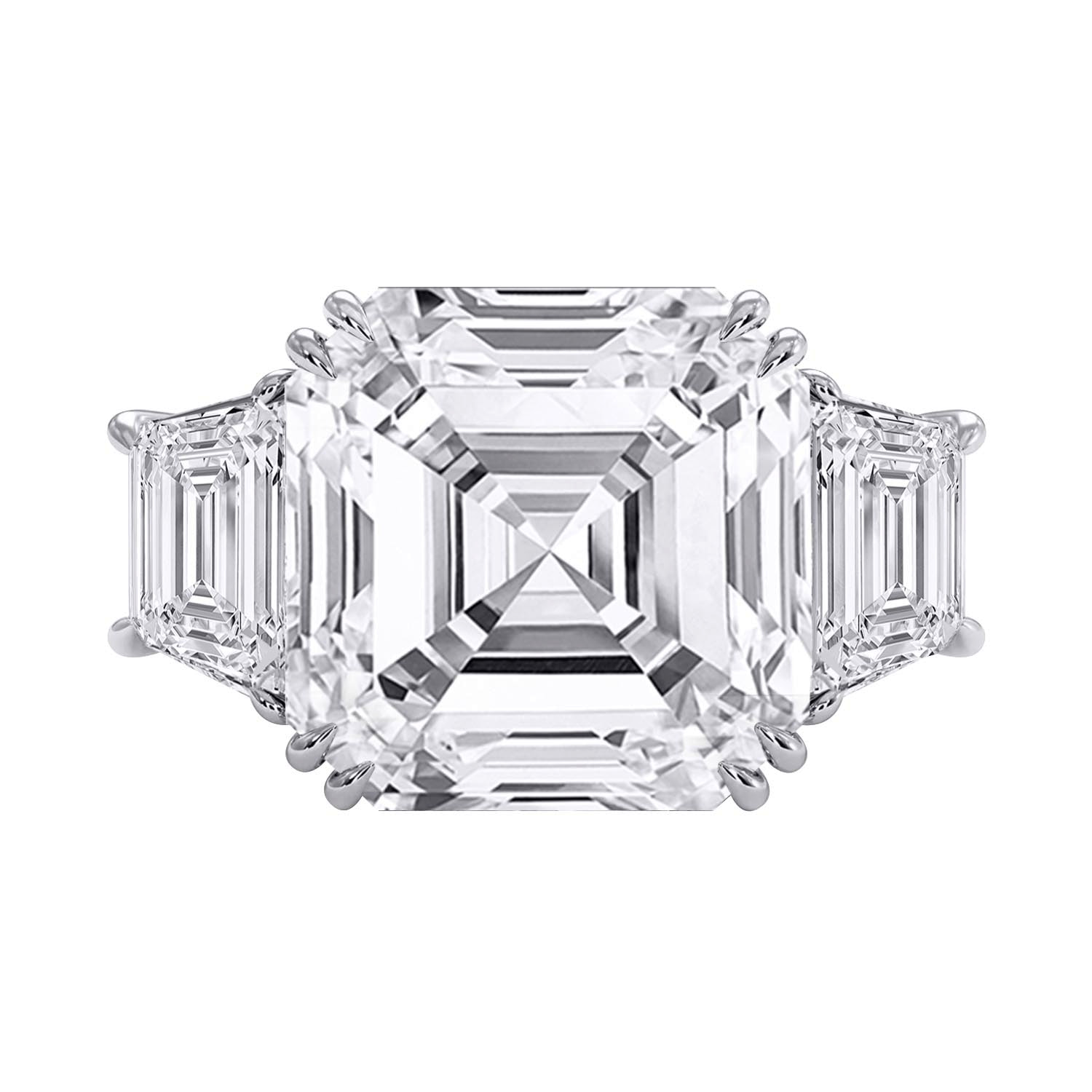 14k White Gold Assher Cut Lab Grown Diamond Ring 3.50ct