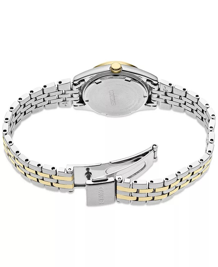 From the Essentials Collection. Offering classic dress/sport designs, the Essentials Collection provides the ideal solution for everyday wear. Crafted of stainless steel in versatile two-tone finish, this perfectly balanced watch features a white dial with Arabic numerals and day/date calendar for a superb blend of clarity and style. 10 bar, 100M Water Resistant